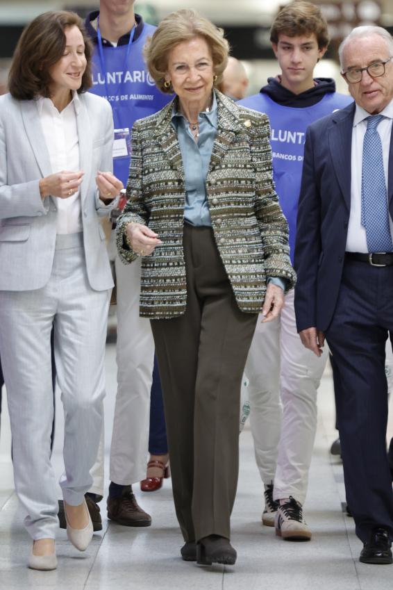 La madre del Rey ha acudido a un supermercado de Madrid para dar visibilidad a la campaña para recoger 10 millones de kilos de alimentos con los que atender a más de un millón de personas en toda España